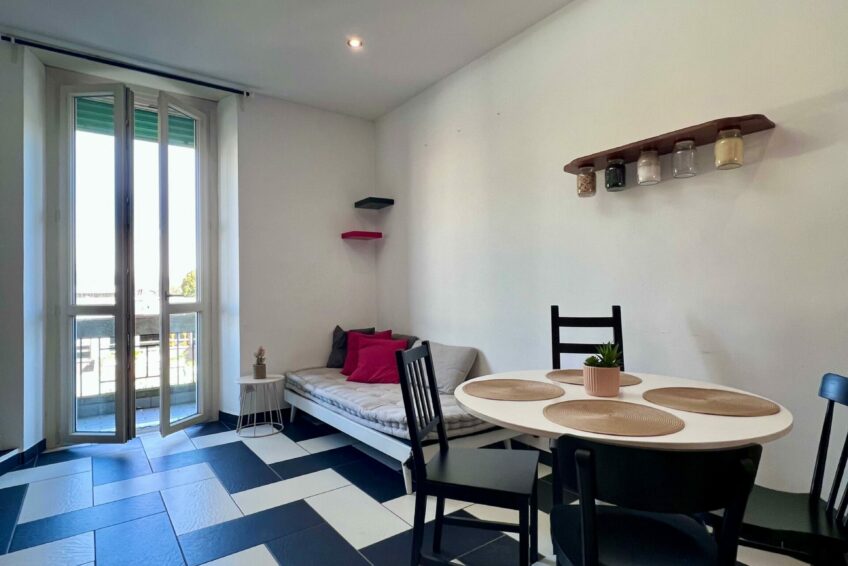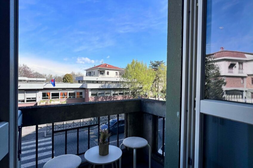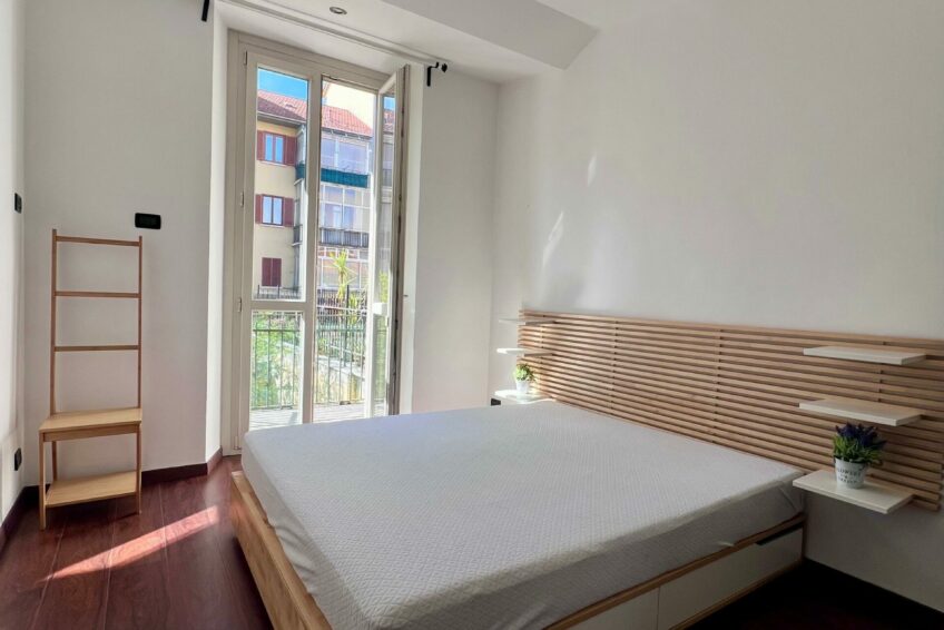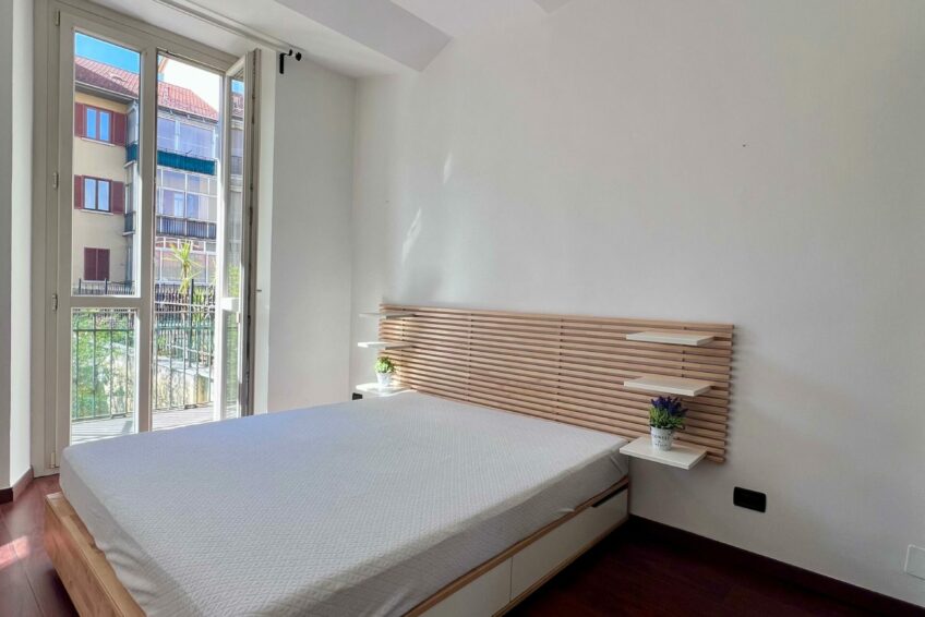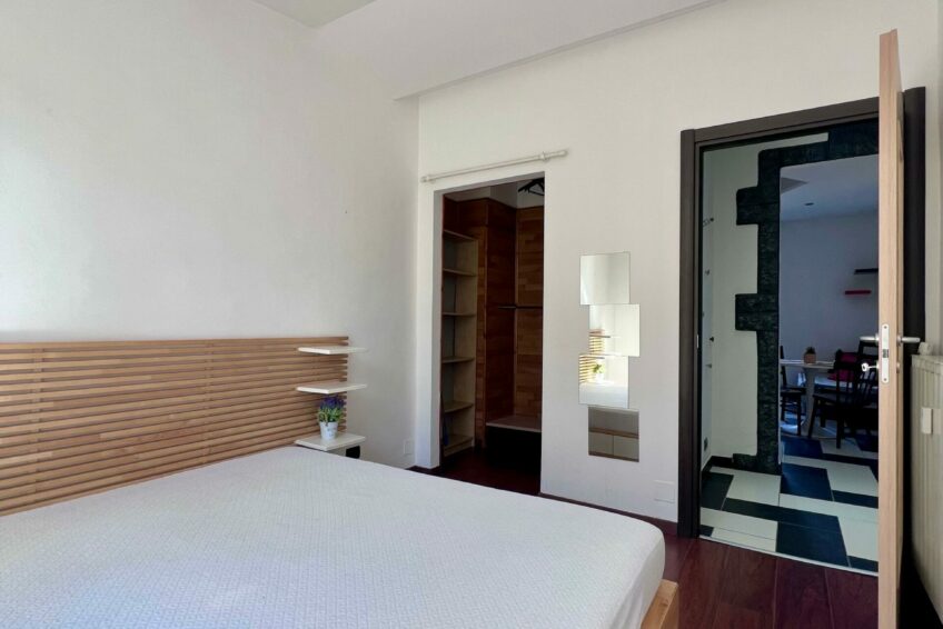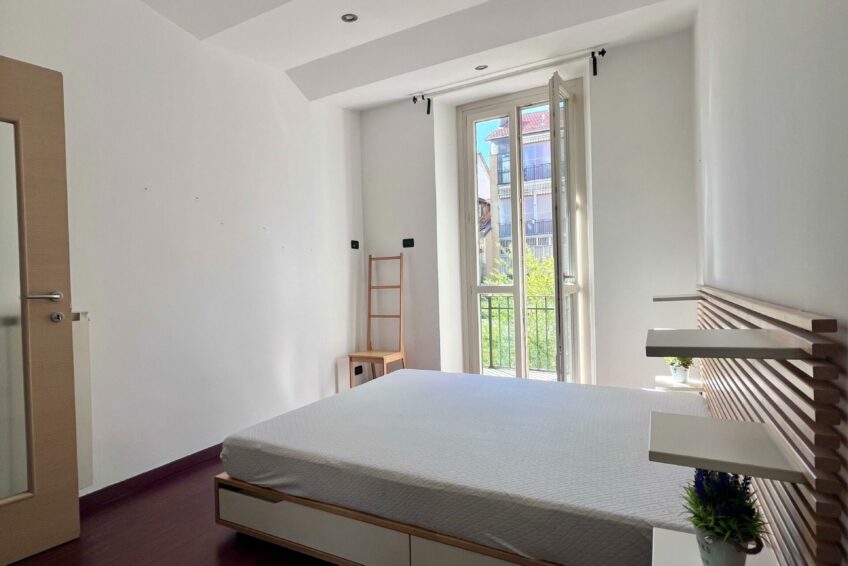 La camera da letto è altrettanto luminosa, dotata di balcone sul cortile interno, che garantisce tranquillità e riservatezza.