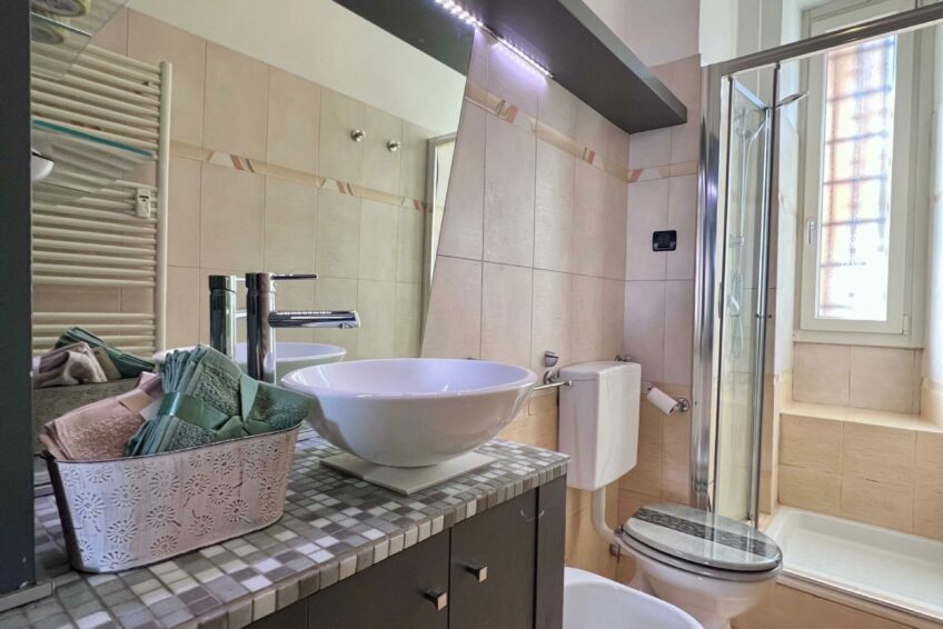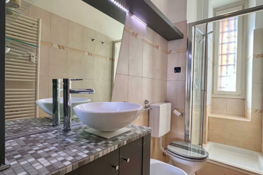 Il bagno è finestrato e dotato di box doccia.