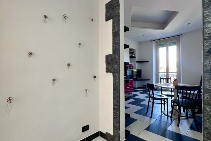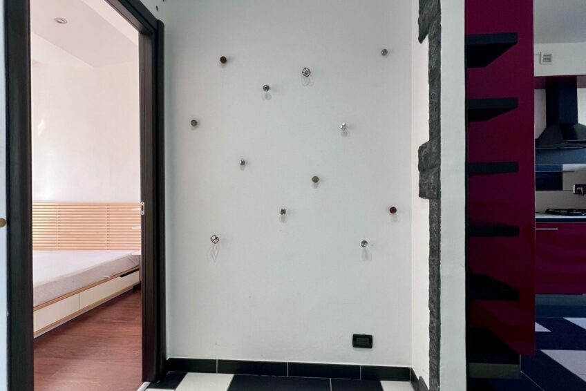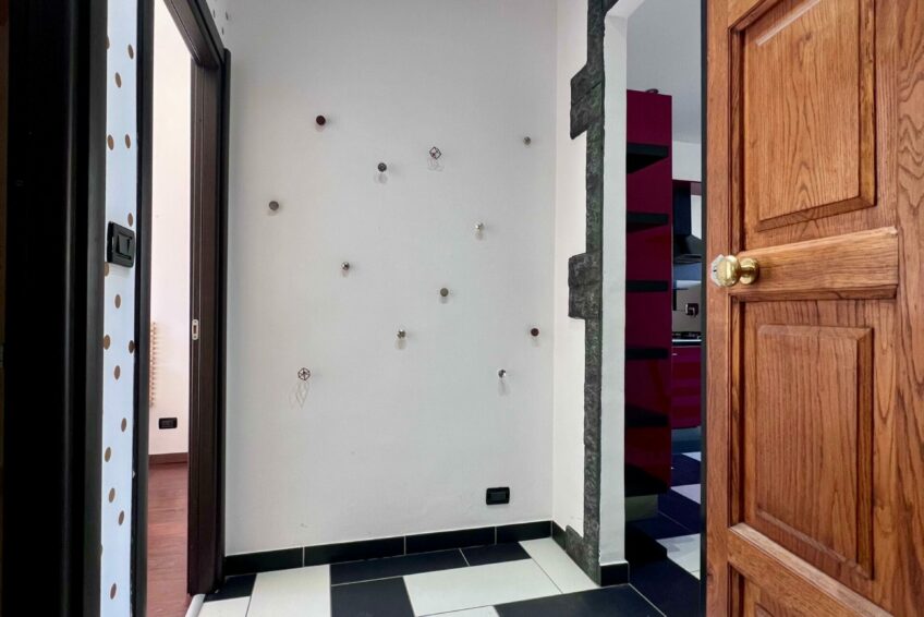L’ingresso apre su un comodo disimpegno che divide la zona giorno e la zone notte.