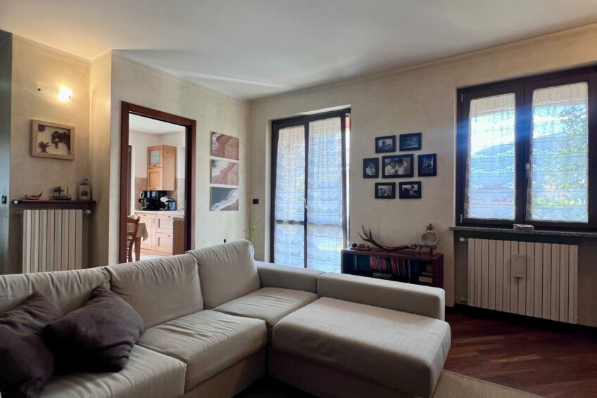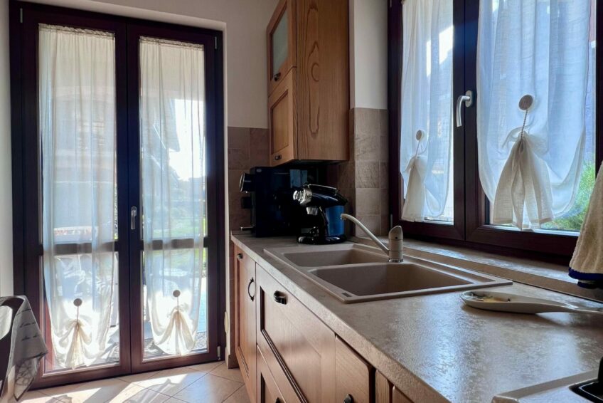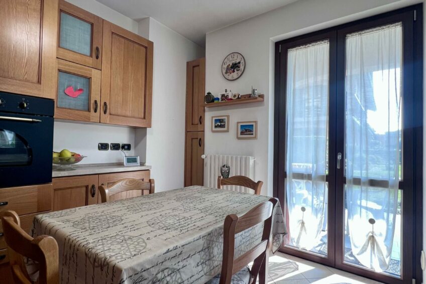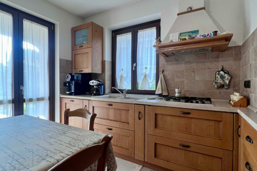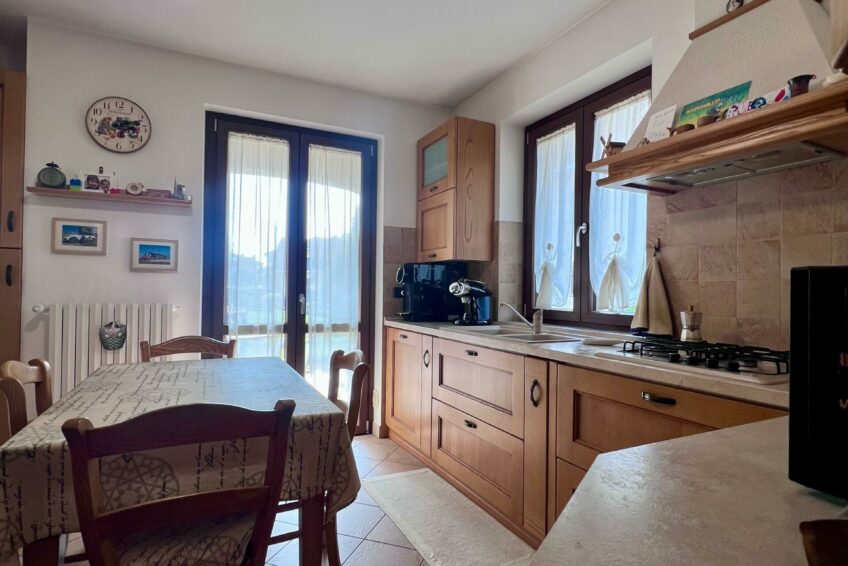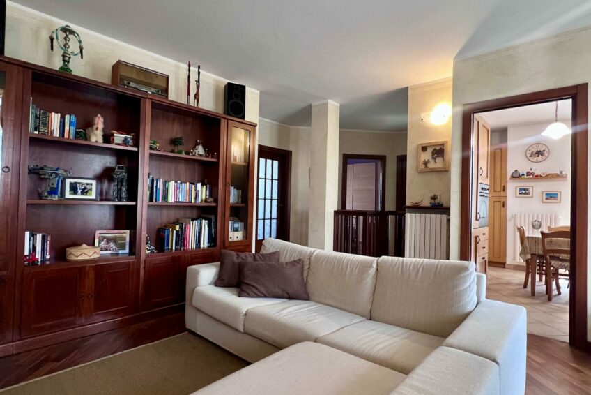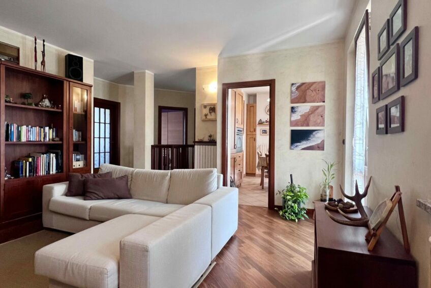 Tramite il portoncino blindato, l’ingresso è living su un accogliente soggiorno, che comunica con la cucina abitabile.