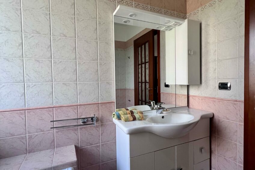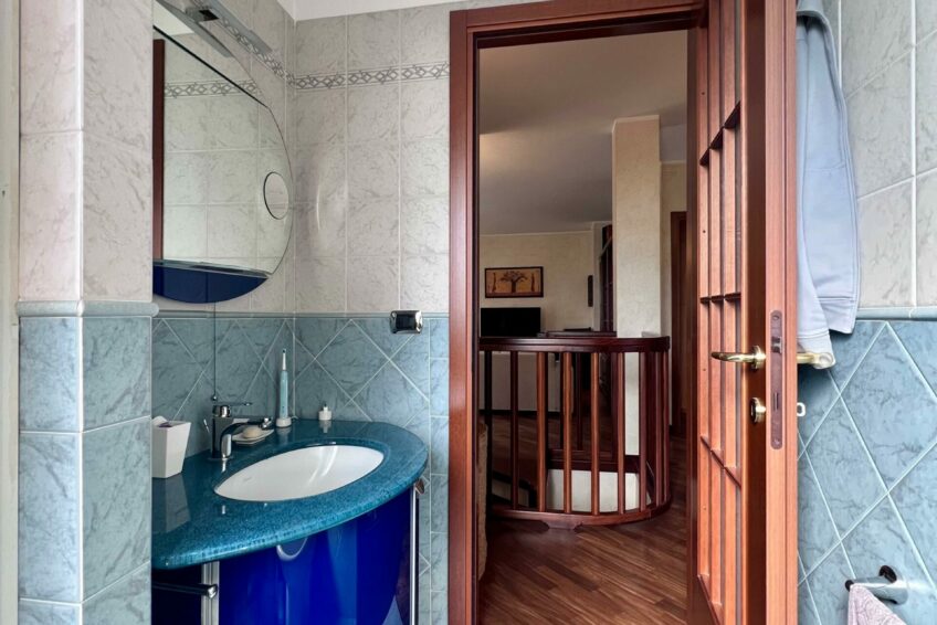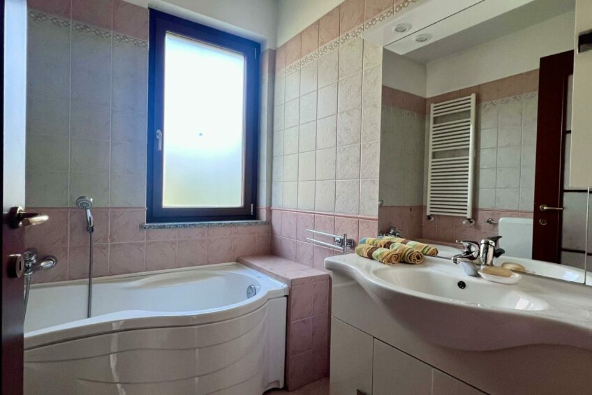 Un disimpegno centrale fornisce l’accesso alla zona notte, composta di due camere da letto e di due bagni, entrambi finestrati.