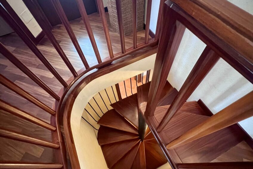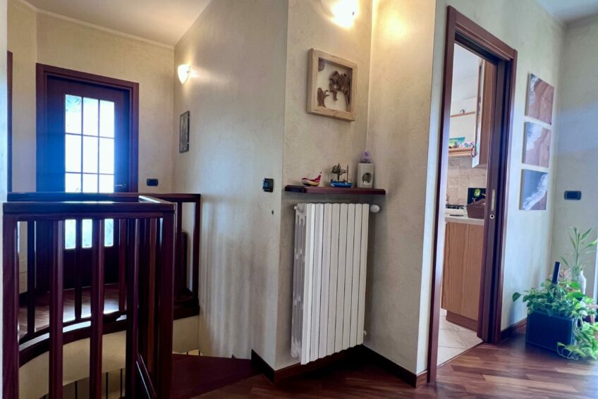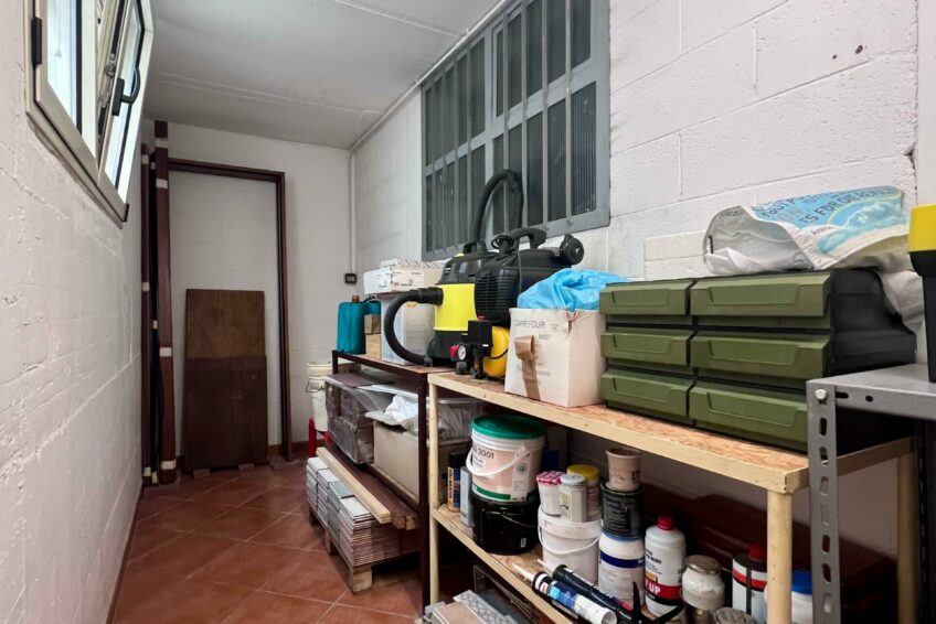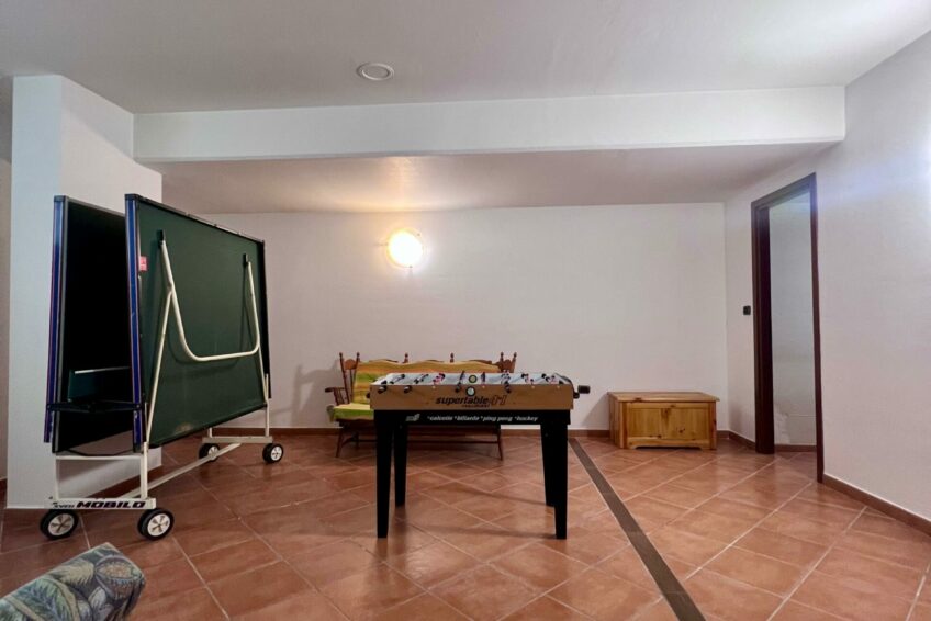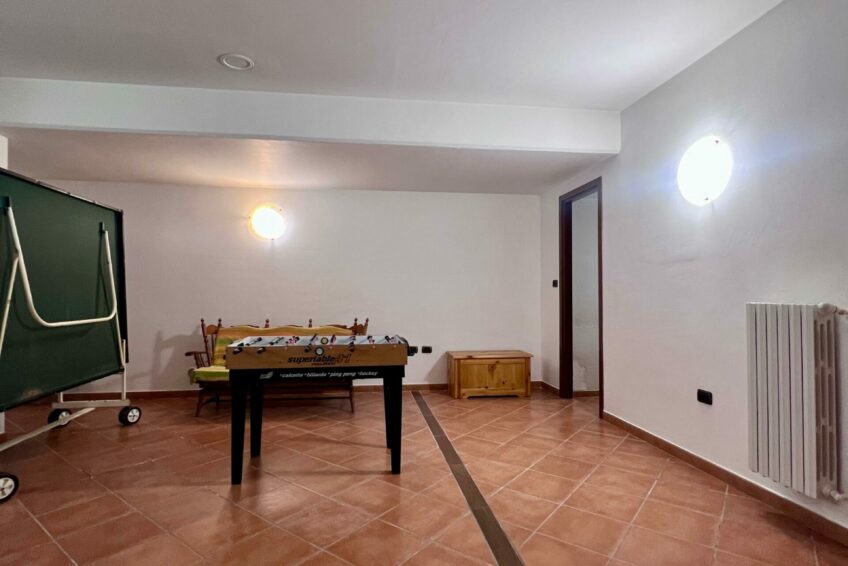 Una scala in legno collega internamente al piano interrato, dove si fa spazio un locale molto grande e versatile ad oggi adibito a TAVERNA, con un altro con servizio igienico.
