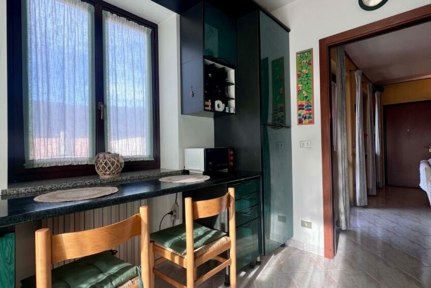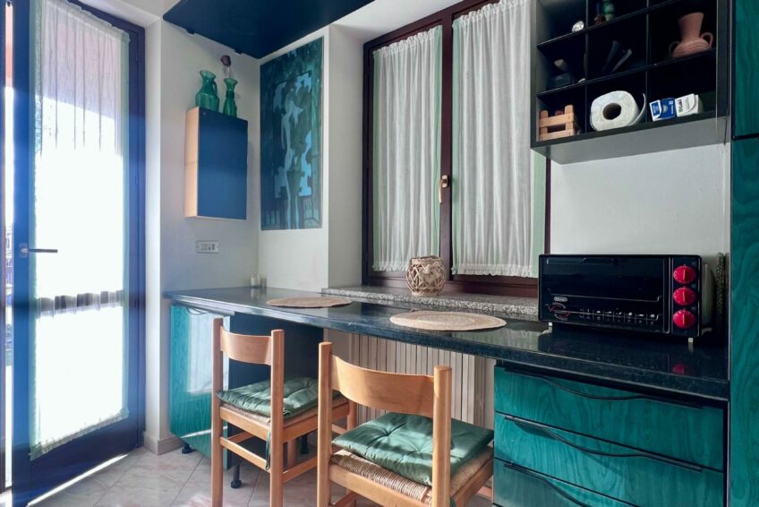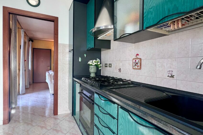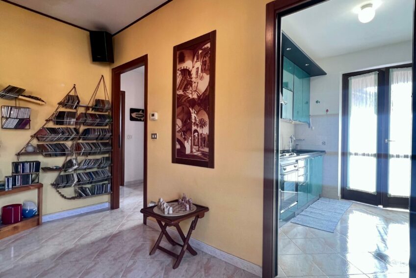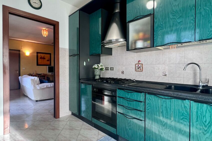 Tramite il portoncino blindato, l’ingresso è living su un accogliente soggiorno, che comunica con la cucina abitabile con un funzionale terrazzino ben esposto.