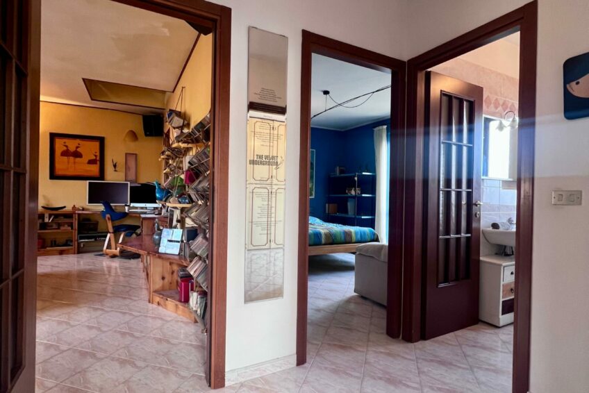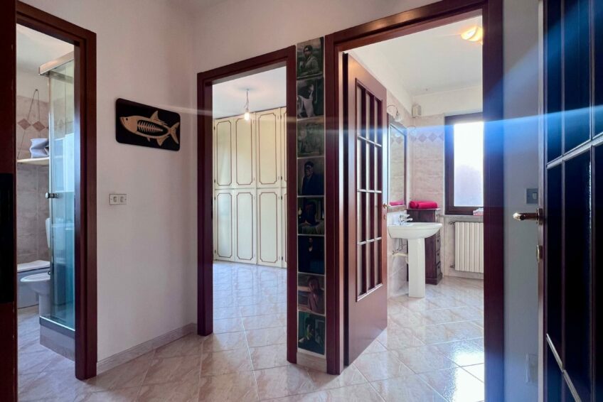 Un disimpegno centrale fornisce l’accesso alla zona notte, composta di due camere da letto e di due bagni, entrambi finestrati.