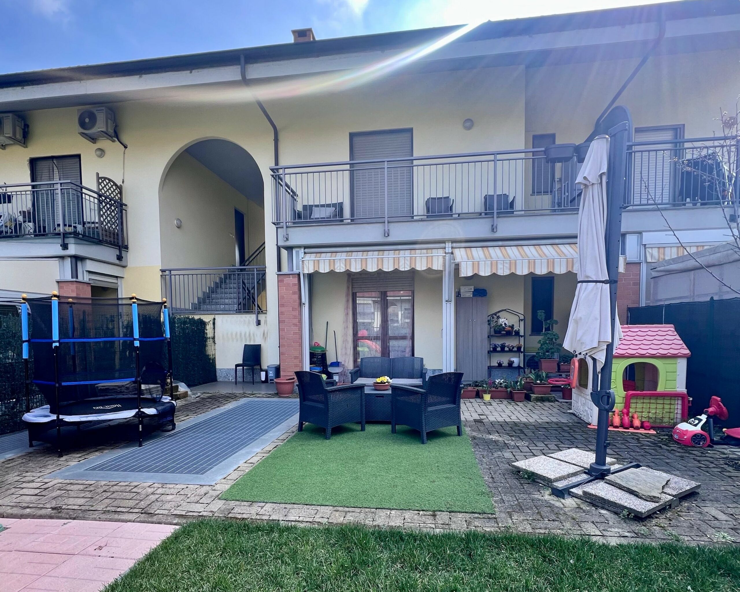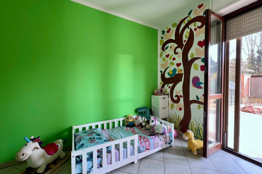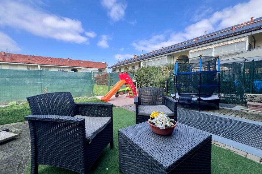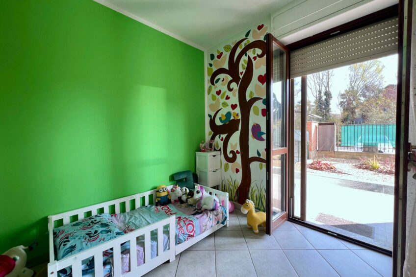 La peculiarità di questa proposta immobiliare è che sia zona giorno sia zona notte, conducono parallelamente ai due giardini di proprietà, godendo pertanto, di una magnifica esposizione a tutte le ore del giorno.