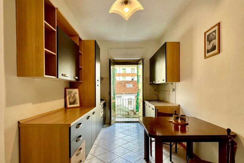 Un comodo disimpegno disloca ai tre ambienti dell’abitazione: la cucina è abitabile, mentre le due camere da letto sono grandi e perfettamente versatili ad ogni tipo di arredo.
