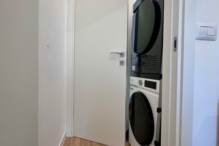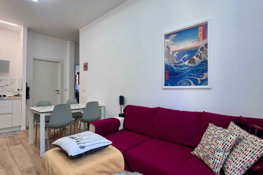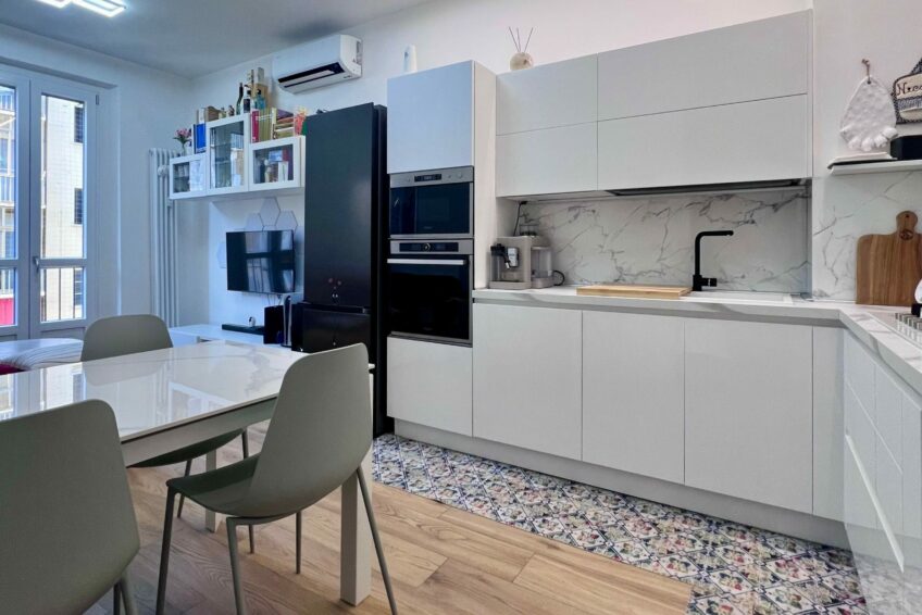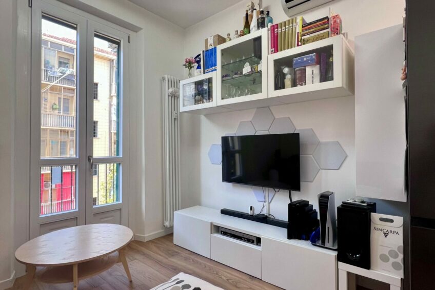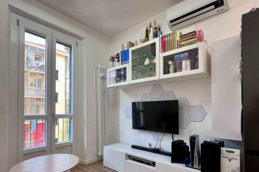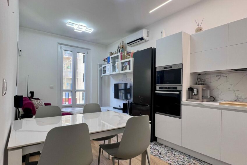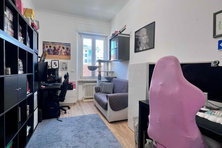 La luminosità è favorita dalla doppia area ed i due balconi, parallelamente esposti, offrono la possibilità di ospitare un piccolo tavolino.