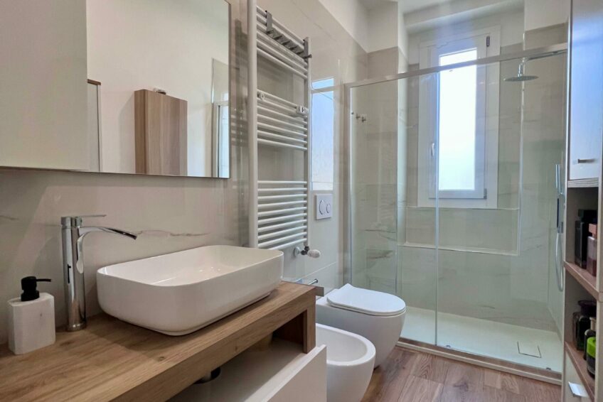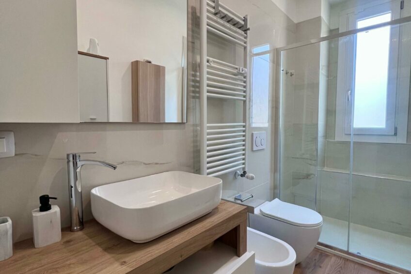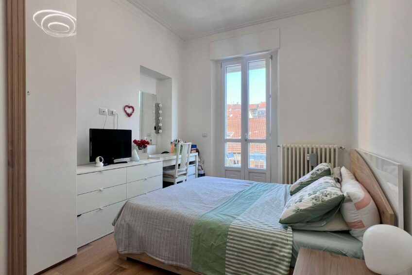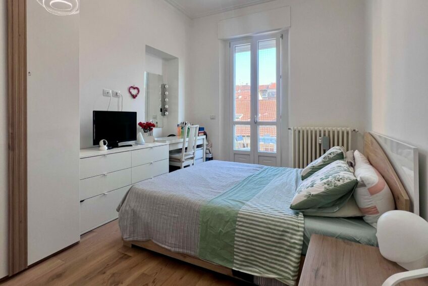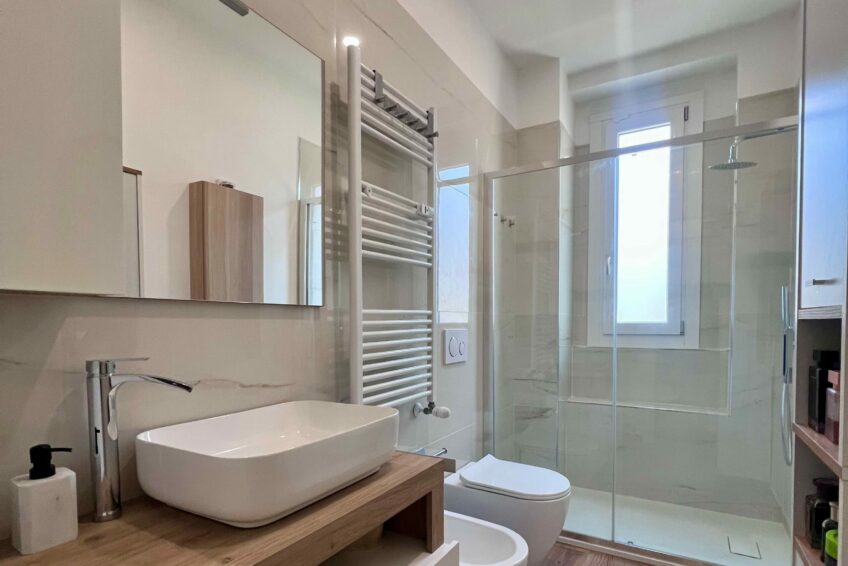 Le due camere servono una zona notte perfettamente funzionale; il bagno con finestra, si caratterizza di un comodissimo box doccia, con termoarredo ed angolo lavanderia.