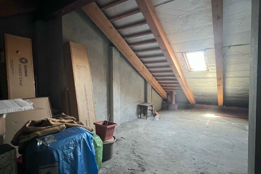 L’appartamento si posiziona all’ultimo piano di una piccola realtà in paramano, circondata dal verde e caratterizzata dalla presenza di sole cinque rampe di scale.
