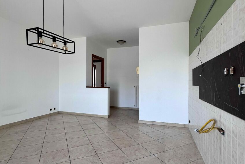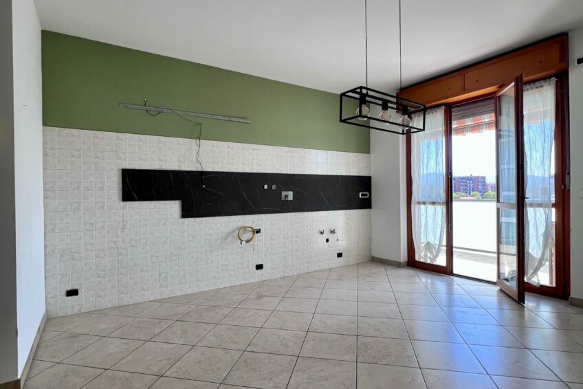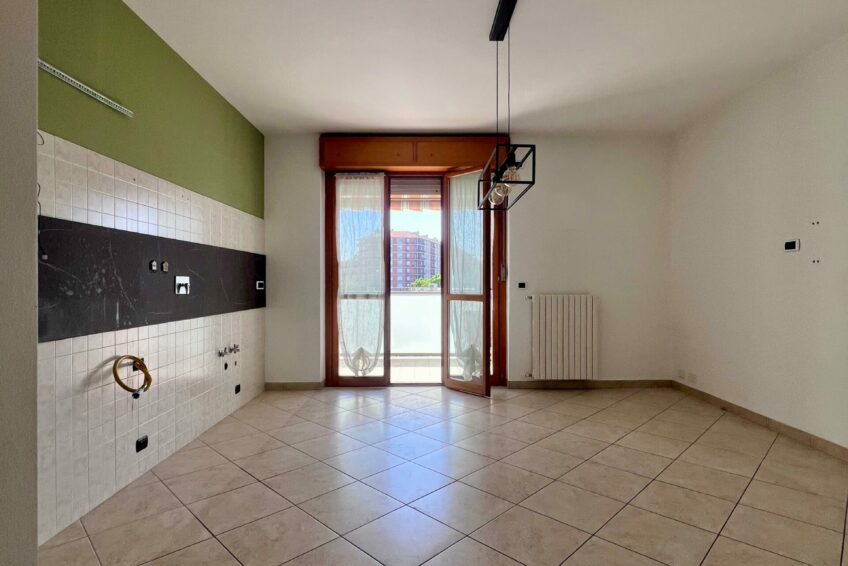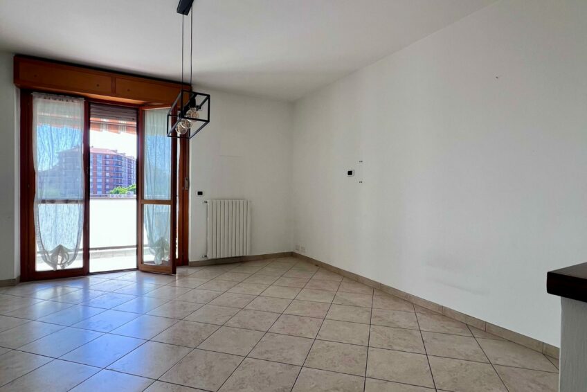 Il soggiorno living con angolo cottura è ampio, dotato di un primo balcone, esposto sull’interno cortile e perfetto per ospitare tavolo con sedie e divanetti, grazie alla metratura di cui dispone.